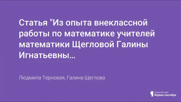 Статья "Из опыта внеклассной работы по математике учителей математики Щегловой Галины Игнатьевны и Терновой Людмилы Владимировны МОУ «СОШ №78» г. Барнаула Алтайского края"