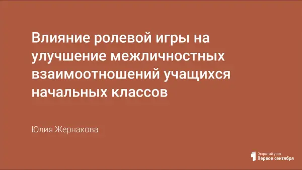 Представлен доклад на тему "Влияние ролевой игры на улучшение межличностных взаимоотношений учащихся начальных классов". Ставятся задачи: проанализировать труды ученых по проблеме формирования взаимоотношений в младшем школьном возрасте, провести экспериментальное исследование влияния игровых методов на формирование социально-активной личности младшего школьника.