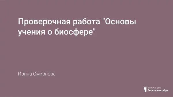 Проверочная работа по теме «Основы учения о биосфере» включает 2 вида заданий: тест с выбором одного верного ответа и задания с развернутым кратким ответом.