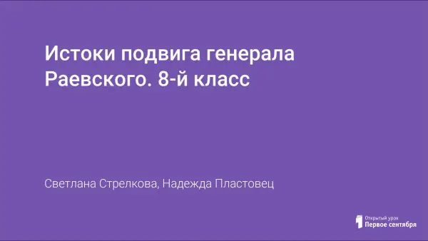 В центре внимания урока духовно-нравственные ценности, утверждаемые автором, воспитывающие любовь к семье, отчему дому, родной стране. Урок позволяет увидеть истоки подвига генерала Н.Н. Раевского, учит беречь духовные богатства наших предков.