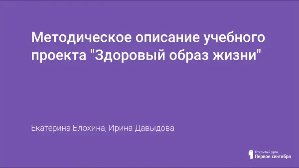 Методическое описание учебного проекта "Здоровый образ жизни"