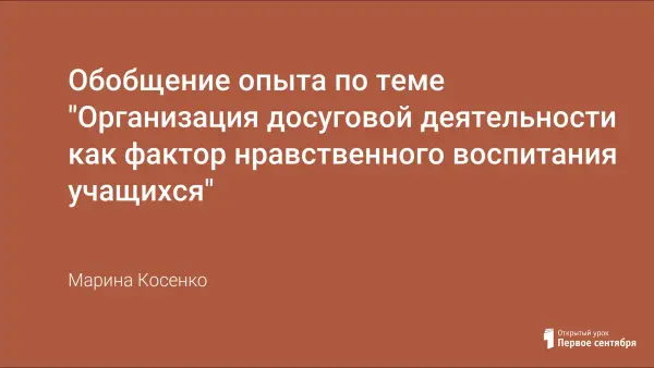 Одним из приоритетных направлений воспитательной работы является нравственное воспитание. В современном мире проявления высокой нравственности: сострадание, соучастие, сопереживание, уважение к другим и самому себе, к сожалению, отходят на второй план. Одним из условий развития нравственного и духовного потенциала обучающихся является организация досуга воспитанников.