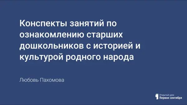 Конспекты занятий по ознакомлению старших дошкольников с историей и культурой родного народа
