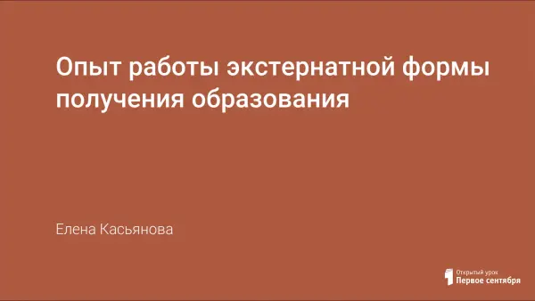 В статье отражена концепция экстернатной формы получения образования. Проблемный анализ. Методическая работа учителей. Цели образования в экстернате.