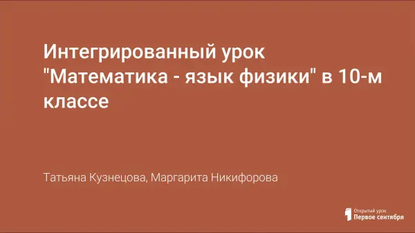 Интегрированный урок "Математика - язык физики" в 10-м классе