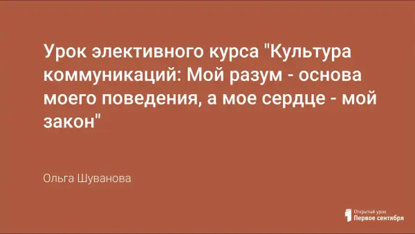 В рамках элективного курса «Культура коммуникаций» представлен урок, цель которого познакомить с этическими понятиями "долг", "справедливость", "честность", "нравственные запреты" и научить делать нравственный выбор.