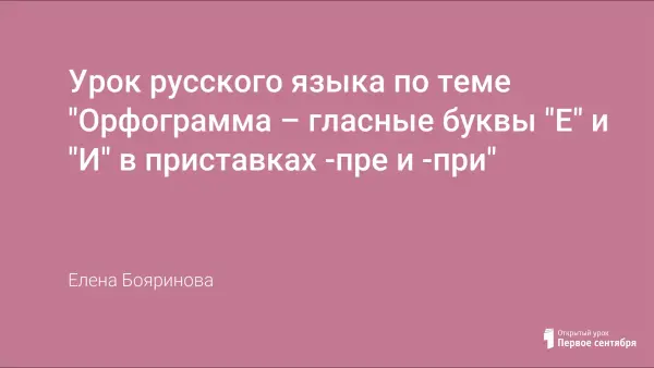 Цель урока: познакомить учащихся с орфографическим правилом, регулирующим выбор букв "Е" и "И" в приставках -пре и -при; формировать умения различать на письме приставки -пре и -при; развивать умение анализировать изучаемое орфографическое явление; воспитывать потребность овладеть грамотным письмом.