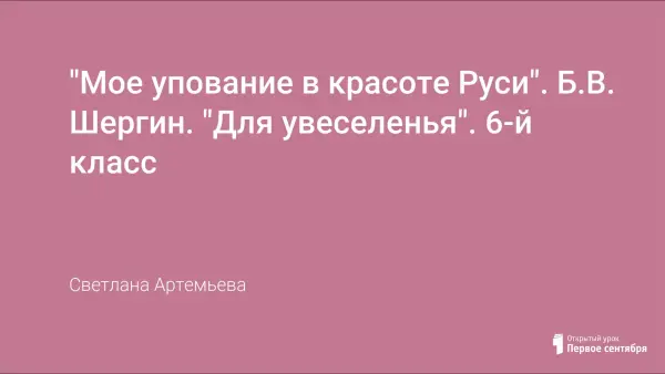 Методическая разработка урока литературы в 6-м классе по региональному компоненту на примере изучения сказа Б.В.Шергина «Для увеселенья». В ходе урока предусматривается использование ИКТ.
