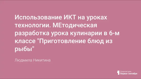 Урок кулинарии, посвященный приготовлению блюд из рыбы. Урок сообщения новых знаний, систематизации знаний и умений, с применением ИКТ. Учащиеся знакомятся с пищевой ценностью рыбы, ее видами и способами приготовления, выполнением санитарно – гигиенических требований. Учатся выполнять первичную обработку рыбы, снимать рыбное филе, оформлять холодные закуски. Урок способствует формированию навыков культуры труда: точности, аккуратности, умению планировать свою деятельность, воспитанию коммуникабельности.