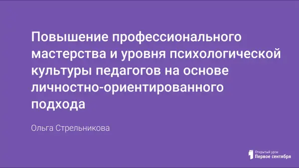 Повышение профессионального мастерства и уровня психологической культуры педагогов на основе личностно-ориентированного подхода