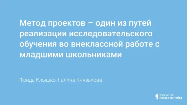 Метод проектов – один из путей реализации исследовательского обучения во внеклассной работе с младшими школьниками