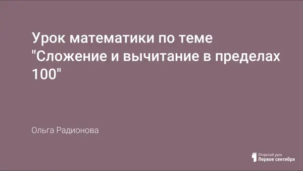 Урок проводится в форме путешествия со сказочным героем. Чтобы помочь доктору Айболиту, ребята должны выполнить различные задания на сложение и вычитание в пределах 100.