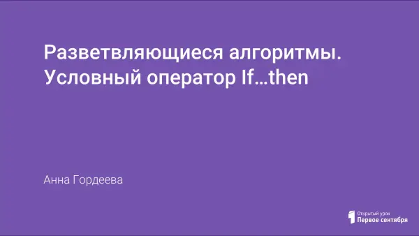 Рассматривается большая тема – программирование. Дети уже знакомы с одной алгоритмической структурой – линейные алгоритмы. На уроке обучающихся знакомят со второй алгоритмической структурой – разветвляющимися алгоритмами. На практике с учениками разбираются способы написания программ на языке программирования Turbo Pascal.