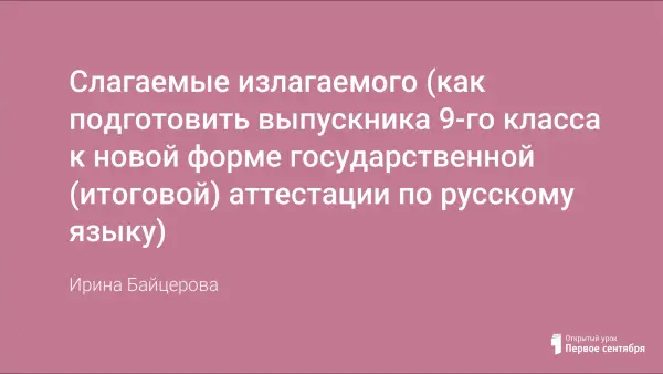 В процессе подготовки к письменному экзамену по русскому языку в новой форме ученик должен, во-первых, уяснить "слагаемые" подробного изложения; во-вторых, освоить элементы тестирования; в-третьих, научиться писать сочинение-рассуждение; в-четвертых, выработать психологический настрой и, наконец, попробовать свои силы на репетиционном экзамене.