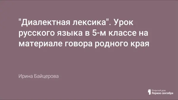 Цель урока – знакомство пятиклассников с диалектной лексикой как особым пластом русского языка. Урок, разработанный на материале говора родного края, развивает интерес к живой народной речи и устному поэтическому творчеству; совершенствует навык работы со справочной литературой и воспитывает любовь к малой родине.