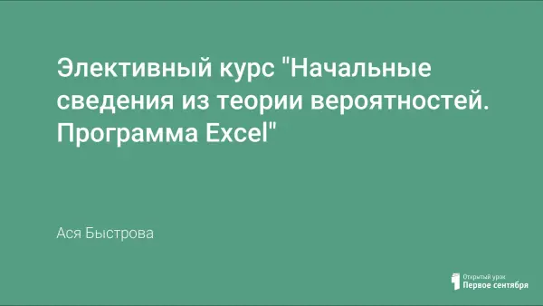 Элективный курс представлен в виде электронного учебника, это HTML-документ с окнами "Теория", "Практика", "Тест", "Сам!". Рассмотрены определения вероятности, примеры моделирования случайных процессов в программе Excel. Учебник может быть использован как для самостоятельного изучения темы, так и в качестве электронного УМК на уроках.