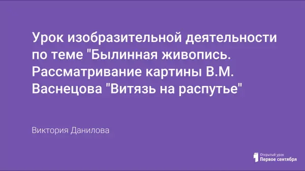 На этом уроке знакомят младших школьников со сказочно-былинной живописью через анализ содержания, средства выразительности, последовательное рассматривание картины, умение высказывать свое мнение об увиденном, используя доказательные суждения, оценки.