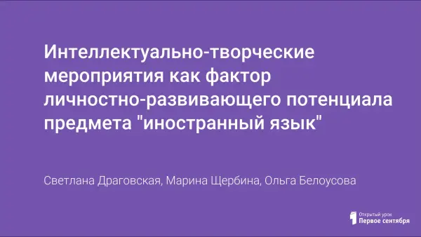 Интеллектуально-творческие мероприятия как фактор личностно-развивающего потенциала предмета "иностранный язык"