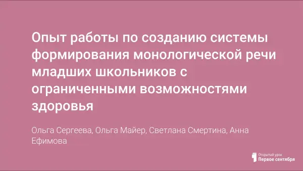 В основе системы работы по формированию монологической речи в школе VIII вида лежит комплексный подход, направленный на решение на одном уроке разных, но взаимосвязанных задач, охватывающих все стороны речевого развития и развития высших психических функций младших школьников с ограниченными возможностями здоровья, что и рассматривается в статье.