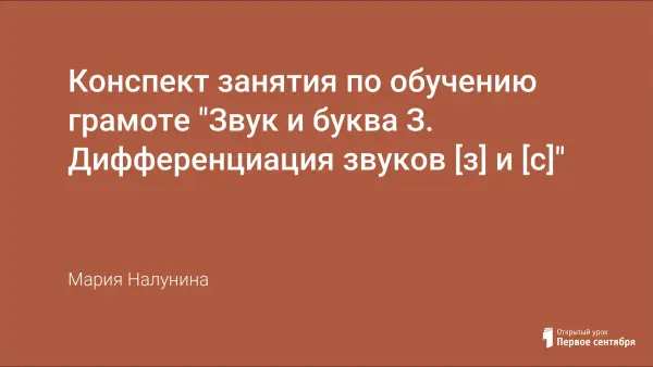 Основными задачами урока являются: закрепление знаний детей по звукам [З] и [З'] и букве З; формирование умения дифференцировать звук [З]и [С]; развитие навыков фонематического представления и фонематическою анализа и синтеза; воспитание заинтересованности в приобретении знаний об особенностях родного языка.