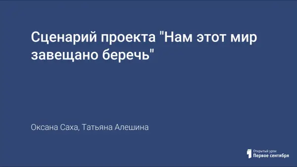 Сценарий проекта "Нам этот мир завещано беречь"