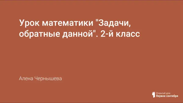 Цель урока: уметь узнавать и составлять обратные задачи; уметь использовать в речи термин «обратная» задача; знать структуру задачи; уметь решать задачи в одно действие; уметь выделять её части и анализировать содержание текстовой задачи; уметь составлять краткую запись или схематический рисунок; уметь выполнять вычисления изученных видов.
