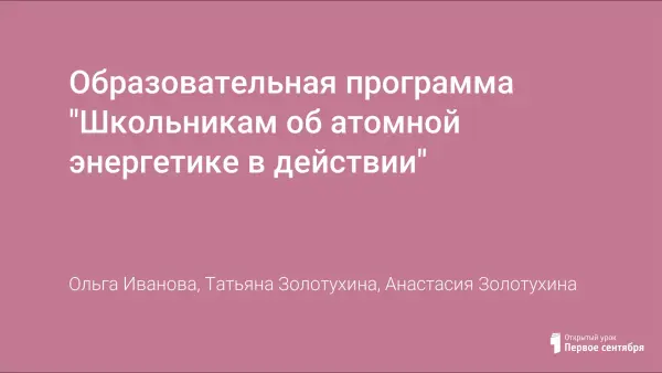 Авторы рассказывают о своем опыте разработки обучающих программ в области атомной энергетики в России. Внедрение таких программ внесет вклад в формирование гражданского самосознания у школьников, пробудит интерес к инженерным специальностям, даст стране молодое поколение физиков-ядерщиков. К работе прилагается сценарий урока "Знает каждый первоклассник: мирный атом - это классно!"