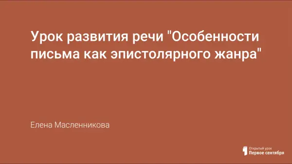 Эпистолярный жанр утратил свои позиции. Нам легче отправить СМС, позвонить по телефону, чем написать письмо. Но только в письме к близкому человеку мы можем поделиться переживаниями, "излить душу". Цель урока – возродить традиции эпистолярного жанра. Обучающиеся познакомятся с особенностями эпистолярного жанра; научатся составлять текст письма, правильному написанию письма: делового, официального, личного.