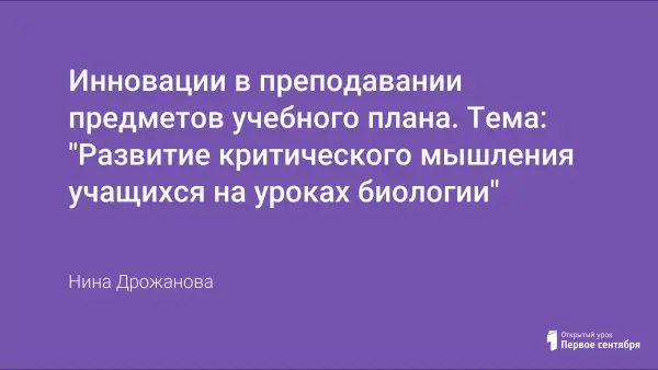 В работе представлены теоретические основы технологии критического мышления учащихся и разработаны уроки по курсу биологии "Человек", 8-й класс по учебнику Н.И. Сонина. Уроки разработаны соответственно модели описанной С.И. Заир-Бек, и имеют основу, состоящую из трёхфазного процесса: вызов - реализация смысла (осмысления содержания) - рефлексии (размышления).