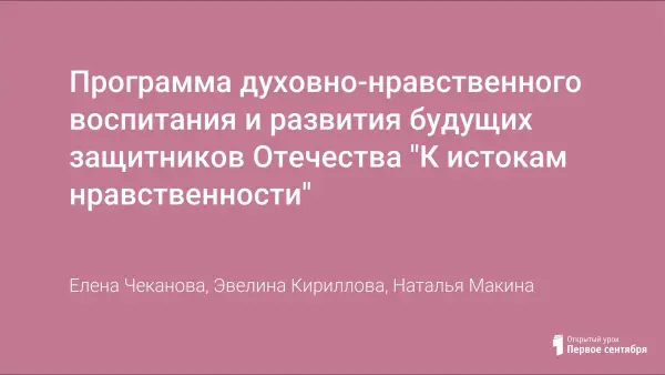 Школьная комплексная целевая программа "К истокам нравственности" духовно-нравственного воспитания и развития будущих защитников Отечества разработана на концептуальных основах государственных образовательных стандартов общего образования второго поколения.