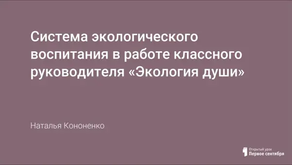 В законе об образовании воспитание определяется как деятельность, которая направлена на развитие личности, создание условий для самоопределения на основе социокультурных и духовно-нравственных ценностей. В основу работы классного руководителя полагаю основные цели современного российского образования, акцентируя внимание на экологическом воспитании обучающихся.