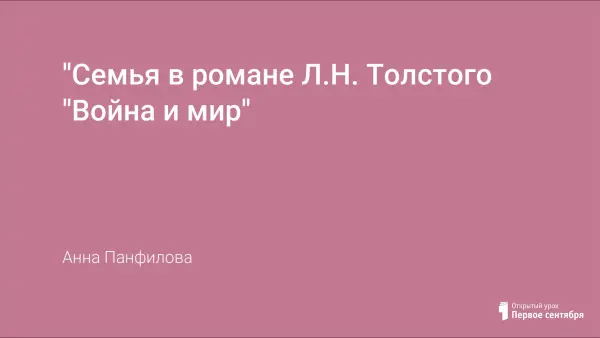 Одна из самых важных тем в романе Л. Н. Толстого – тема семьи, ее значение и становление характера человека. С целью повышения качества знаний по литературе применен метод групповой работы. Такая форма помогает развить творческие способности учащихся, формировать языковые умения, способствует развитию познавательной активности в процессе анализа и исследовательской деятельности.