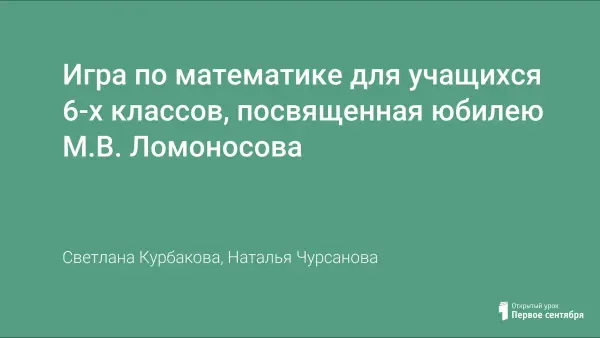 Игра по математике для учащихся 6-х классов, посвященная юбилею М.В. Ломоносова