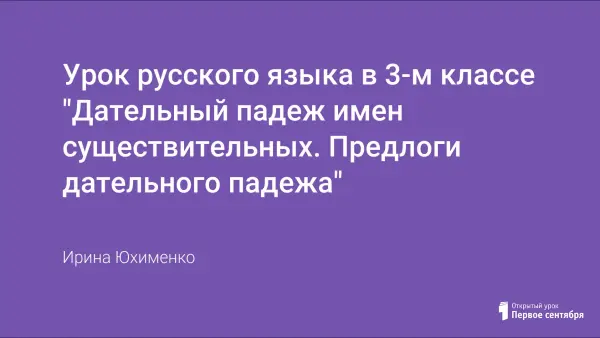 Этот урок ставит пред собой цель - познакомить учащихся с особенностями имен существительных в дательном падеже, вопросами и предлогами дательного падежа. Для этого используются самые различные методы и приемы работы, позволяющие учителю держать учащихся во внимании весь урок, увлеченно заниматься учебным предметом, не уставая, добиваться высоких результатов в своей работе.