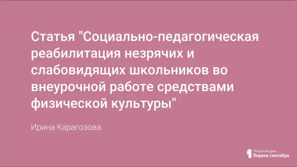 Автор знакомит с методикой работы с незрячими и слабовидящими школьниками во внеурочное время средствами физической культуры и обосновывает ее целесообразность.