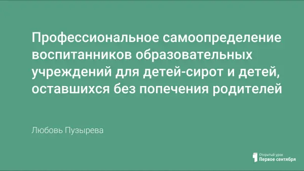 В современных условиях возрастает значимость профессионального самоопределения школьников, а особенно воспитанников детских домов.