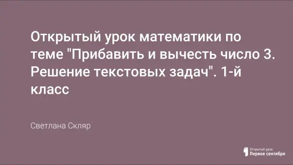 На уроке у учащихся закрепляются умения прибавлять и вычитать число 3; решаются задачи; развиваются навыки счета, умение сравнивать длину отрезков и чертить отрезки заданной длины.