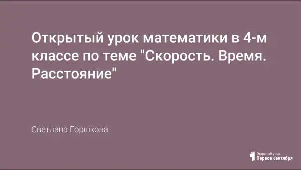 Цели урока: изучение взаимосвязи между скоростью, временем, расстоянием; развитие умения применять правила при решении задач; развитие логического мышления; развитие вычислительных навыков.