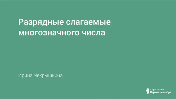 На уроке учащиеся знакомятся с понятием "разрядные слагаемые"; учатся раскладывать на разрядные слагаемые и заменять суммой разрядных слагаемых числа в различных системах счисления.