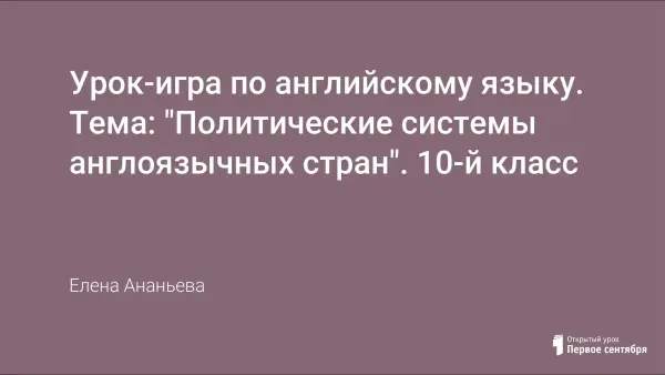 Итоговый урок по теме «Политическая система англоязычных стран» сопровождается презентацией. Отрабатывает и совершенствует навыки речи.