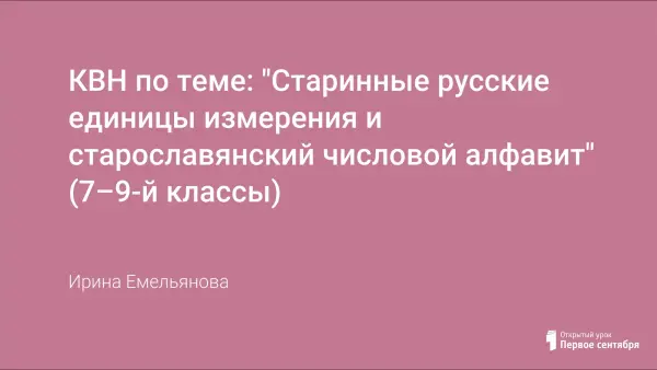 В КВН участвует три команды. Участники придумывают названия своим командам, приветствие соперникам и жюри, выпускают математическую газету с обязательной рубрикой «В старину решали деды». Ребята придумывают ребусы, изучают пословицы, поговорки и крылатые выражения по теме. Различные задания требуют знаний старинных русских единиц измерения, умения переводить их в современные единицы, записывать числа с помощью старославянского числового алфавита.