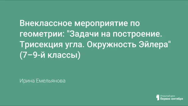 Урок содержит материал, выходящий за рамки школьной программы. Его можно использовать на кружке и факультативе. Ученики знакомятся с биографией и научной деятельностью Л.Эйлера, решают вместе с консультантами задачи на построение трисекции угла и окружности Эйлера.