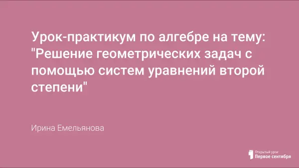 Урок (1-2 часа в зависимости от уровня подготовки учеников) с целью формирования умения решать текстовые задачи с помощью систем уравнений второй степени. Материал к уроку представляет собой подборку задач из школьного курса алгебры и геометрии, а также старинные задачи.