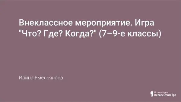 Внеклассное мероприятие для 7–9-х классов представляет собой урок-игру по типу телевизионной игры «Что? Где? Когда?», где вопросы условно можно разделить на три раздела: «Мир, где живем», «Это интересно» и «География, биология и история». В игре участвуют три команды. В перерыве – творческий конкурс.