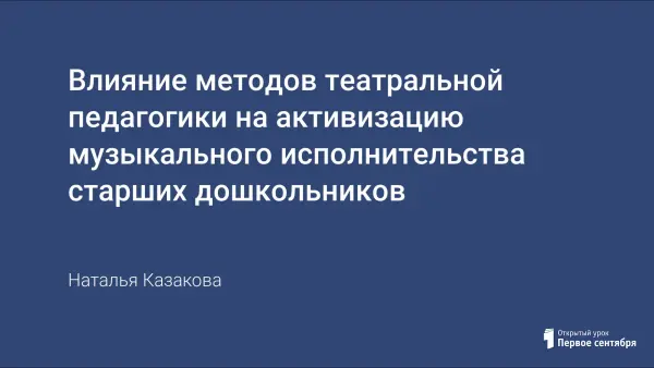 Детское музыкальное исполнительство отличается от исполнительства взрослого: для ребенка важен прежде всего не результат, а сам процесс. Чтобы дошкольник научился понимать то или иное движение красиво, точно под музыку и эмоционально выразительно, необходимы разнообразные методы и приемы, исключающие повторение. Важная роль в решении данной задачи принадлежит театральной педагогике.