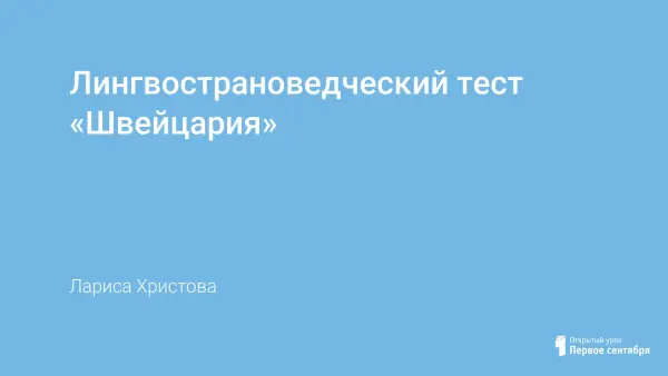 Лингвострановедческий тест может оказать помощь учителям немецкого языка в контроле знаний учащихся по теме «Швейцария», подготовке учащихся к предметным олимпиадам и итоговой аттестации в формате ЕГЭ.