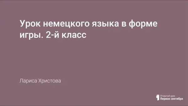 Данный урок создаёт положительную мотивацию к изучению немецкого языка и радостное настроение на уроке, позволит в игровой форме повторить изученный материал за 1-й семестр во втором классе и научит видеть учащихся результаты своей деятельности.