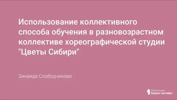 По В.К. Дьяченко, обучение есть общение обучающих и обучаемых. Вид общения определяет и организационную форму обучения. Данный опыт был адаптирован к условиям дополнительного образования.