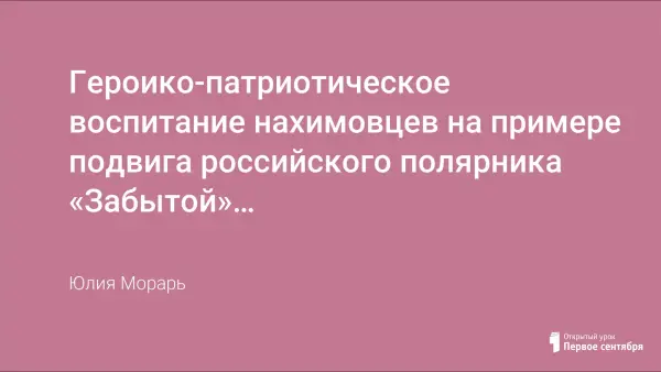 В статье излагается актуальность героико-патриотического воспитания нахимовцев на примере подвига российского полярника «забытой» Гидрографической экспедиции Северного Ледовитого океана (1910–1915 гг.) Бориса Андреевича Вилькицкого. В настоящее время героико-патриотическое воспитание является одним из важнейших факторов, придающий целенаправленность усилиям по формированию патриотического сознания и обеспечивающего формирование ответственного отношения к готовности выполнения задач по защите Отечества. В воспитательных программах военного образования (кадетских классов, суворовских и нахимовских училищ, военных училищ) героико-патриотическое воспитание занимает приоритетные позиции. Героико-патриотическое воспитание нахимовцев представляет собой одну из актуальных задач в сфере духовно-нравственной жизни общества.