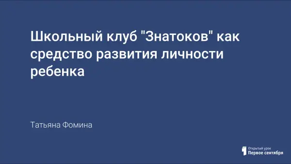 В 2005 г. был создан клуб "Знатоков". Участие школьников в работе клуба активизирует их, позволяет познать себя, раскрыть свои возможности, развить коммуникативные навыки, повысить свой интеллект. Цель создания клуба достигнута - вовлечение детей в общественно-полезную деятельность. Клуб обеспечил каждому участнику возможность самореализации.
